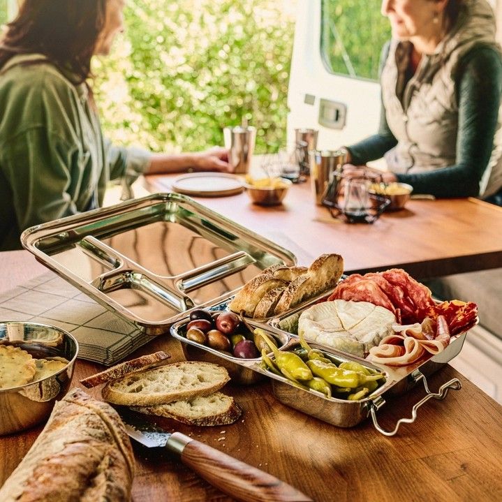 Pack your meals in style with this stainless steel latching bento box. Designed for durability and convenience, it keeps you food fresh and extra secure with its sturdy latch system.