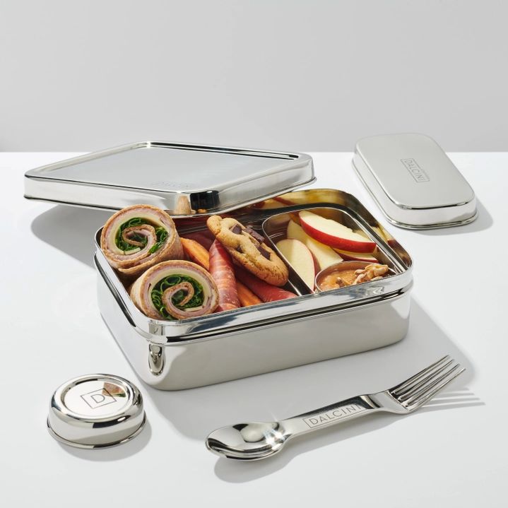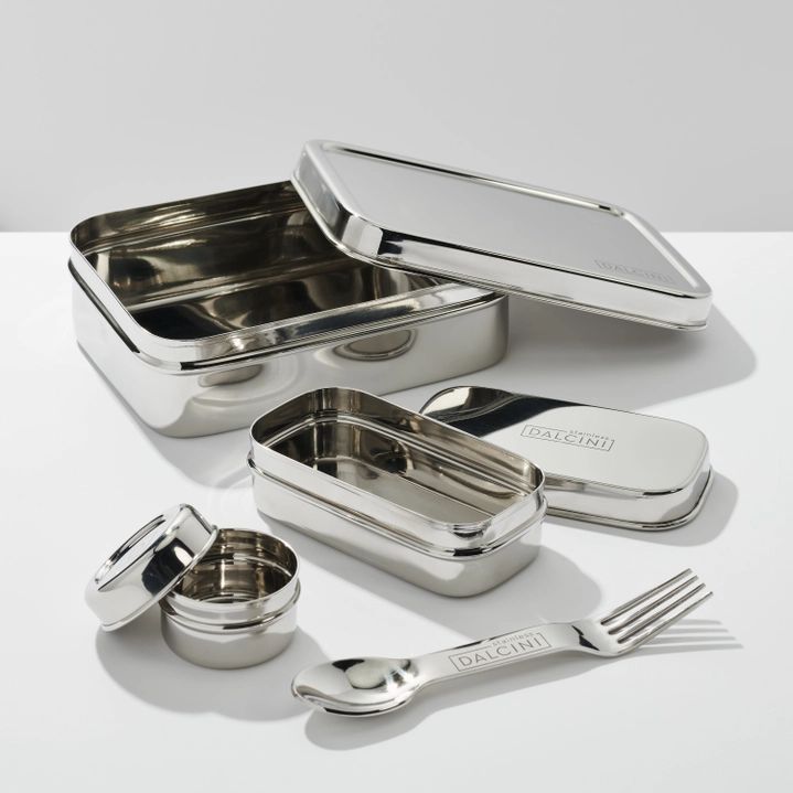 The perfect plastic free lunch set for your little one! Comes with the inlaid boxes perfect for a snack with dip or spread and a spork for easy eating. Made with US FDA-compliant food-grade stainless steel (304). Items can be nested or packed separately. Dishwasher safe. Not for use in microwave.